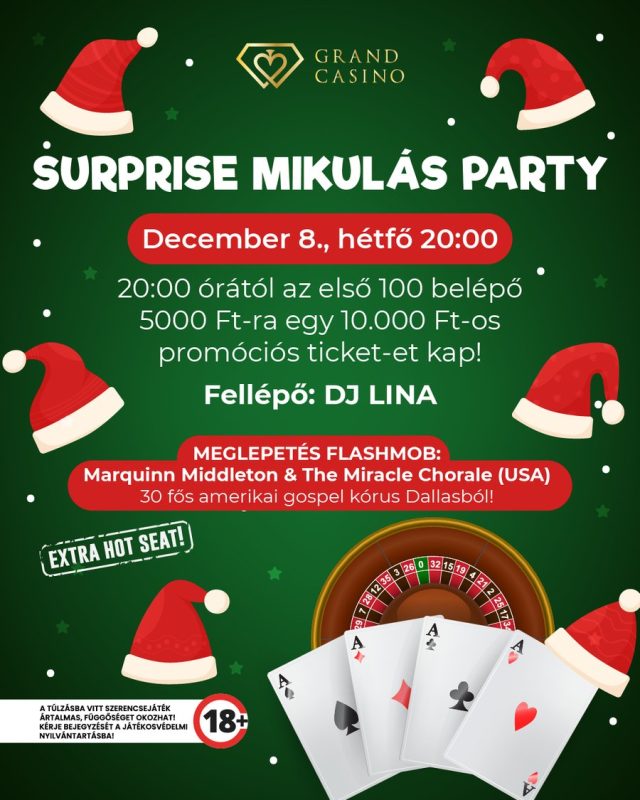 KĂ©szĂŒlj az Ă©v legĂŒnnepibb kaszinĂłbulijĂĄra, mert a Grand Casino-ba is megĂ©rkezik a MikulĂĄs â mĂ©ghozzĂĄ zenĂ©vel, ajĂĄndĂ©kokkal Ă©s extra meglepetĂ©sekkel! đ