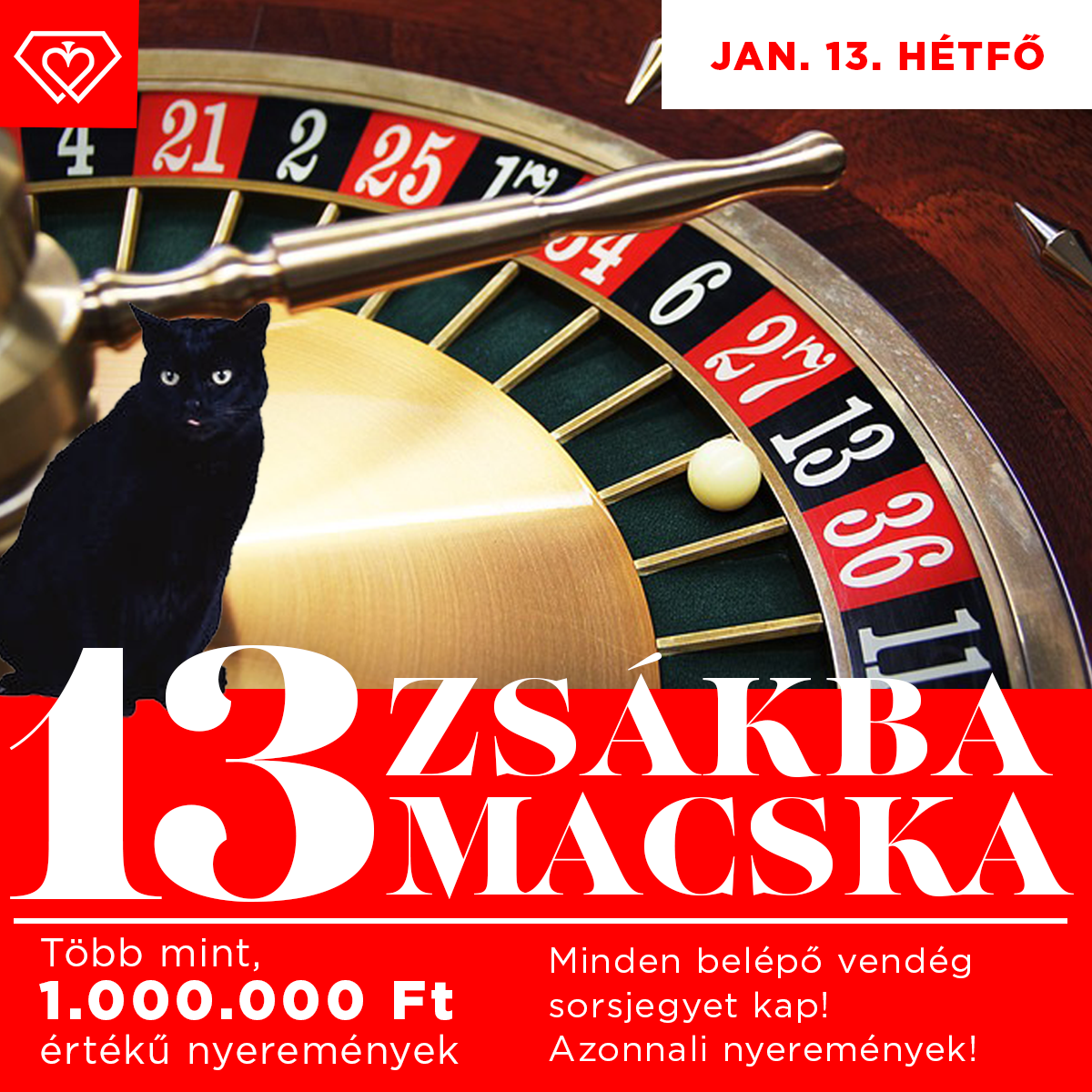Január 13-án, hétfőn ismét érdemes lesz betérni a Grand Casino-ba, hiszen már a belépést követően azonnal nyerhet!