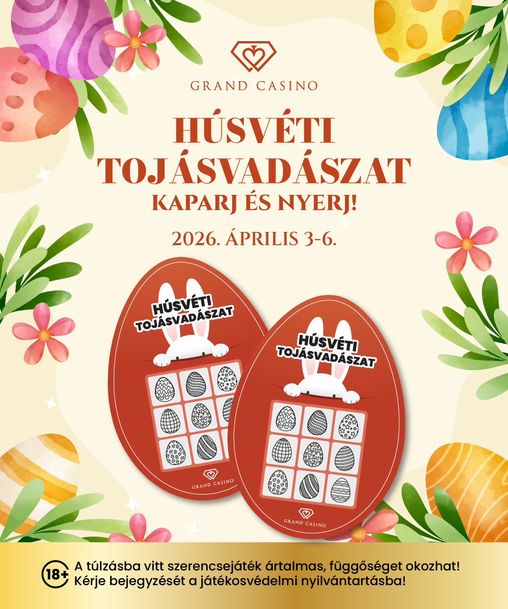 Promóció időtartama: Április 3-6.A túlzásba vitt szerencsejáték ártalmas, függőséget okozhat! Kérje bejegyzését a játékosvédelmi nyilvántartásba!