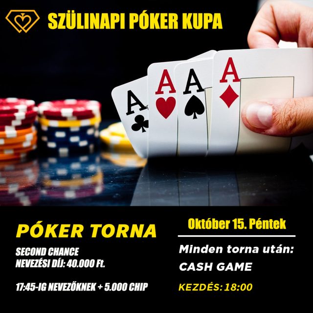 Október 15-én pénteken 40.000 Ft-os Second chance pókerversennyel várjuk vendégeinket!