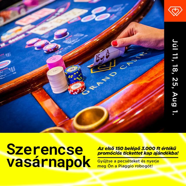 Érdemes lesz a forró nyári napokon is meglátogatni a Grand Casino-t, különösen vasárnap, amikor is a belépésnél az első 150 látogató 3.000 Ft értékű promóciós tickettet kap, amennyiben már legalább 50 alkalommal meglátogatta a Grand Casino-t (2014.10.14 óta)