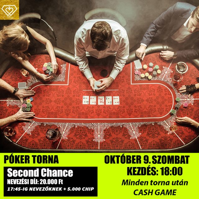 Október 9-én szombaton 20.000 Ft-os Second chance pókerversennyel várjuk vendégeinket!