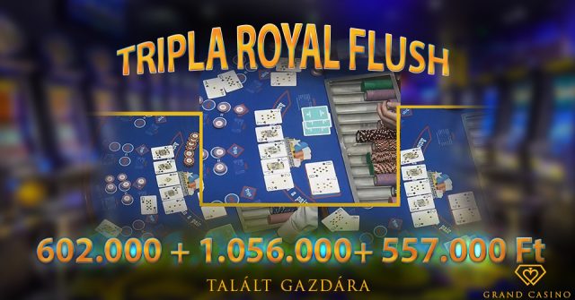 A poker legritkább és legkülönlegesebb kombinációja a Royal Flush, a debreceni kaszinóban azonban úgy tűnik mégsem oly ritka! Múlt héten, néhány nap leforgása alatt 3 különböző alkalommal is Royal Flush került leosztásra a Grand Casino UTH asztalánál, ezzel összesen 2.215.000 FT-ot vihetett haza 3 vendégünk!