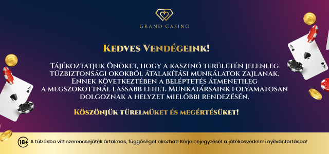 Kedves Vendégeink és Követőink Szeretnénk mindenkit tájékoztatni, hogy a Grand Casino Debrecen hivatalos Facebook oldala jelenleg technikai okok miatt átmenetileg nem elérhető.